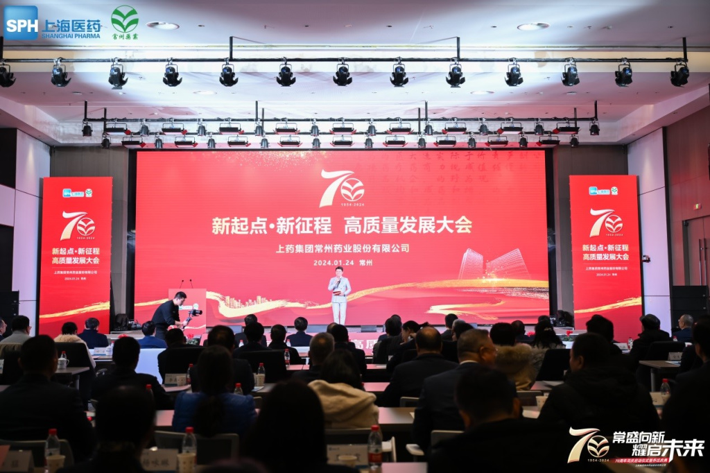 1月24日上午,上藥常藥在新落成的商務(wù)中心舉行新起點·新征程 高質(zhì)量發(fā)展大會。常州市副市長徐軍,上海醫(yī)藥執(zhí)行董事、總裁,上藥常藥董事長沈波,常州市天寧區(qū)委書記許小波,常州投資集團黨委副書記、總裁潘儒,上海醫(yī)藥集團黨委副書記、上海醫(yī)藥副總裁趙勇,上海醫(yī)藥集團黨委委員、工會主席佘群,以及常州市、天寧區(qū)和雕莊街道有關(guān)領(lǐng)導(dǎo),上藥常藥退休老領(lǐng)導(dǎo)和全體中層以上干部,共約150人出席大會。
